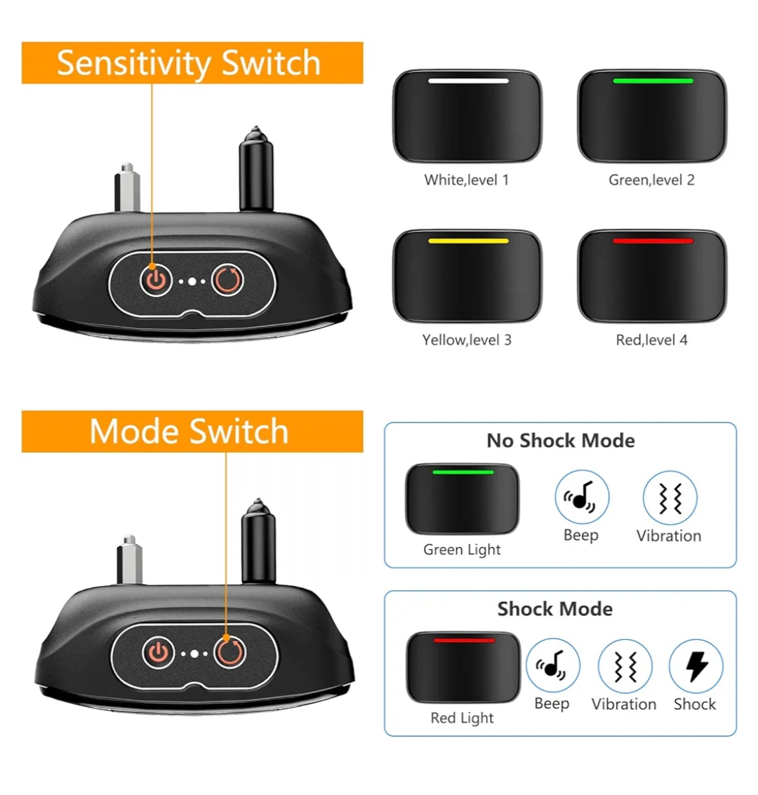 - 【۲ حالت آموزشی انسانی】 قلادههای ضد پارس سگ، ۴ سطح حساسیت و ۲ حالت آموزشی را برای تشخیص موثر پارس سگها در هر اندازهای ارائه میدهند. میتوانید این دستگاه ضد پارس را روی حالت بدون شوک با صدای بوق و لرزش یا حالت شوک، بوق، لرزش و شوک تنظیم کنید. حالت بدون شوک برای سگهای کوچک از ۵ تا ۱۵ پوند توصیه میشود.