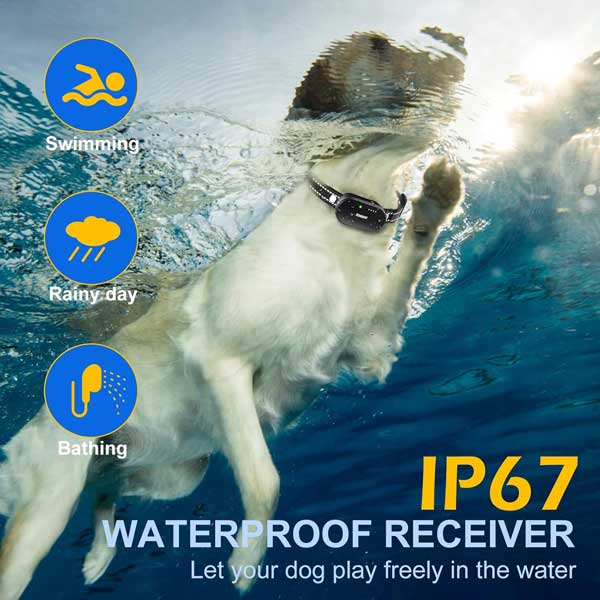 - قلاده ضد آب و طول قابل تنظیم قلاده آموزشی ضد آب IP67 برای سگها، حتی اگر سگ شما در آب بازی کند،(توصیه سایت باز هم بهتر است مراقب قطعات الکترونیکی ضد آب بود ) لازم نیست نگران آسیب دیدن آن باشید، طول بند قلاده قابل تنظیم است، مناسب برای وزن بیش از 10 پوند و اندازه گردن از 7.5 تا 27.5 اینچ.
