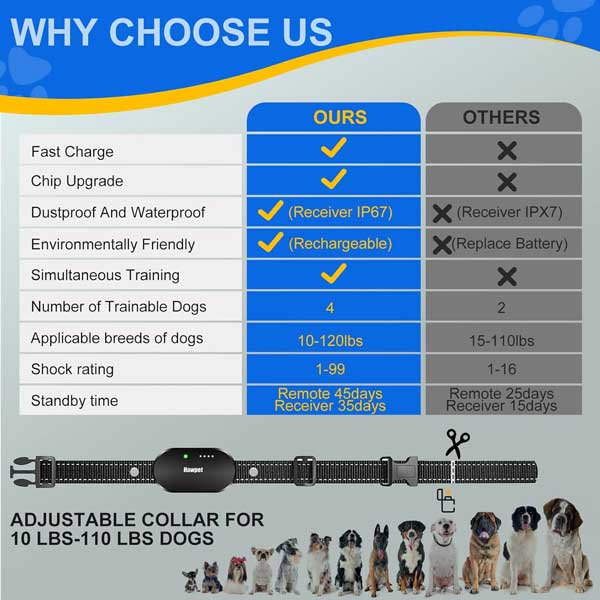 - قلاده آموزشی سگ با ۳ حالت ایمن و ریموت ۳ حالت ایمن: بوق، لرزش (۱-۳ سطح)، شوک الکتریکی (۱-۹۹ سطح)، عملکرد شوک الکتریکی ارتقا یافته و دیگر فقط ۱-۱۶ سطح قابل تنظیم نیست، میتوانید سطح مناسب را برای حیوان خانگی خود تنظیم کنید که میتواند رفتار بد سگ را بدون آسیب رساندن به آن متوقف کند.